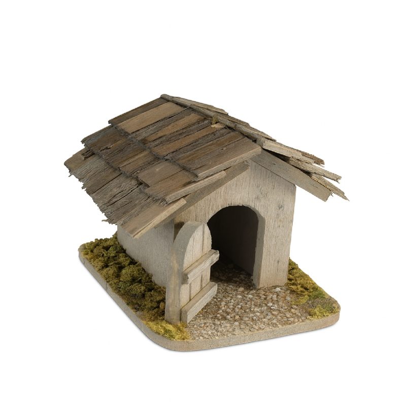 Cuccia del cane in legno naturale per presepe tradizionale, elemento decorativo studiato per arricchire le scene rurali con un dettaglio realistico legato alla vita contadina. La presenza della cuccia contribuisce a rendere più completa e credibile l’ambientazione di aie e cortili, valorizzando il contesto domestico agricolo. Le dimensioni compatte (7 x 5 x 5 cm) la rendono adatta a presepi tradizionali e allestimenti di piccola scala, mantenendo proporzioni armoniche con animali e strutture circostanti.
