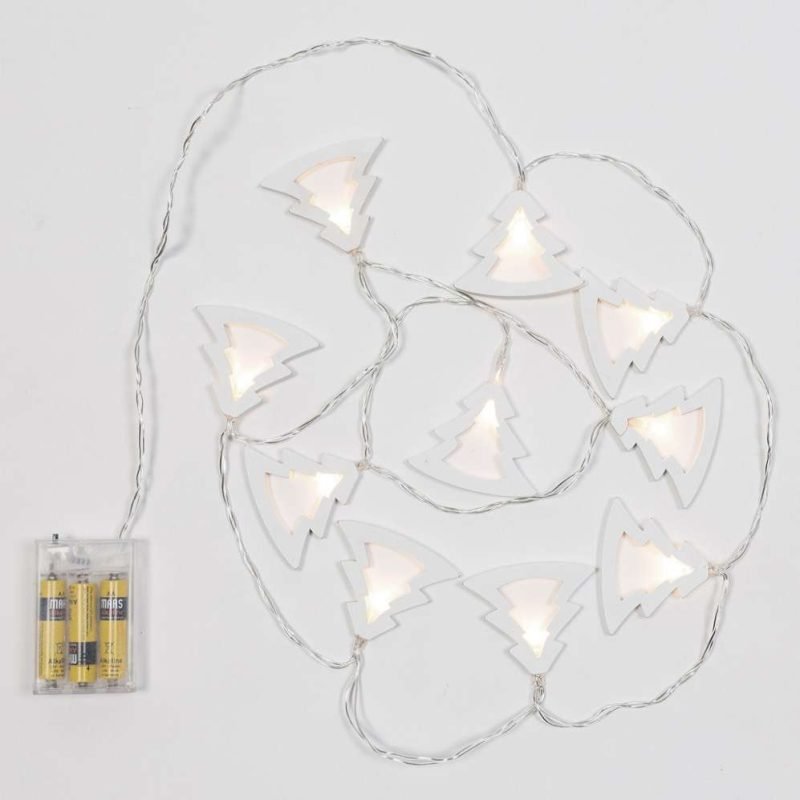 Kette 10 LED-Holzbäume H5,5 cm, 1,5 m, 10 batteriebetriebene warme LEDs; natürliche Weihnachtsdekoration für Ihr Zuhause.