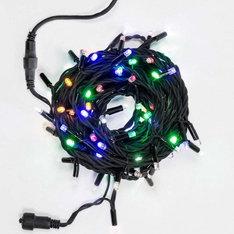 Kette 100 mehrfarbige LEDs 10 m 230V anschließbar. Lebendige festliche Dekoration.