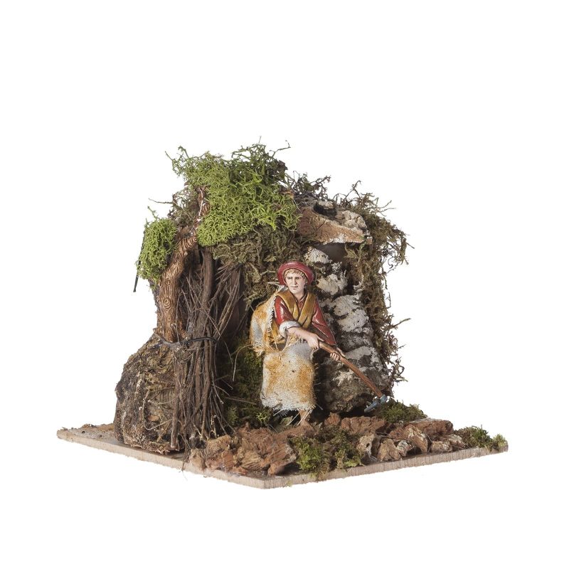 Animierte Figur eines Fischers in Bewegung, hergestellt mit genauen Details aus PVC und Holz. Diese handbemalte Figur verleiht Ihrer Krippe einen Hauch von Dynamik und Realismus. 220V Netzteil, ideal für Szenen im Maßstab 1:20.