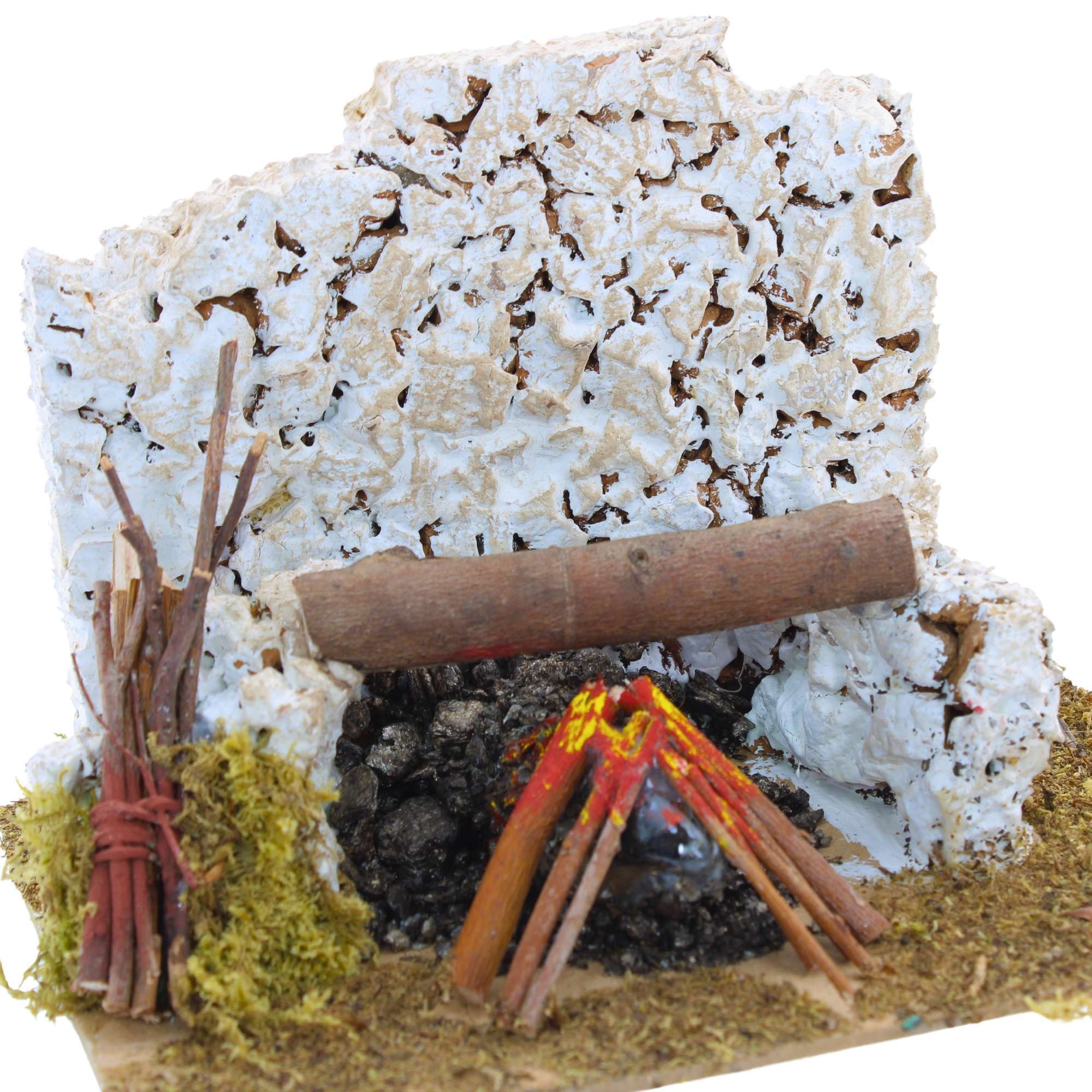 Arabisches Feuer für Krippe mit Flammeneffektlampe 220V, Maße 15x10x10 cm. Ideal für orientalische Szenen oder Kulissen im nahöstlichen Stil. Handgefertigt und perfekt für 10 cm Statuen.