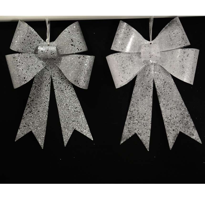 Fiocco con i fiocchi H30 cm weiß silber, raffinierte und helle Weihnachtsdekoration für Baum und elegante Räume.