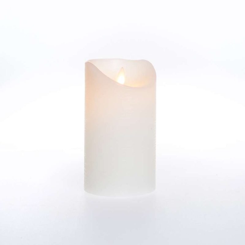 Elfenbeinfarbene Wachskerze LED echter Flammeneffekt – H 12,5 cm – 1 LED warmes Licht Flammeneffekt – batteriebetrieben – mit Timer – für den Innenbereich