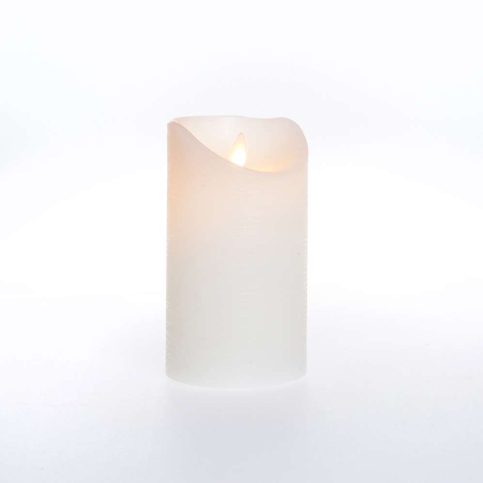 Elfenbeinfarbene Wachskerze H12,5 cm mit echtem LED-Flammeneffekt, Timer und Batterie. Leuchtende Eleganz für drinnen.