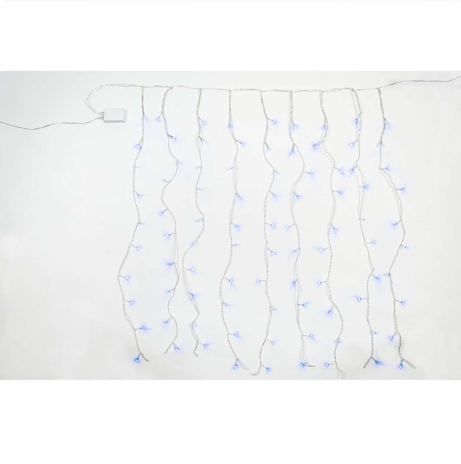 Fusion LED-Vorhang – 400 eisweiße/blaue LEDs – Fusion Farbwechselspiele – B 4,30 m × H 1 m – 24V – transparenter Draht – für den Außenbereich