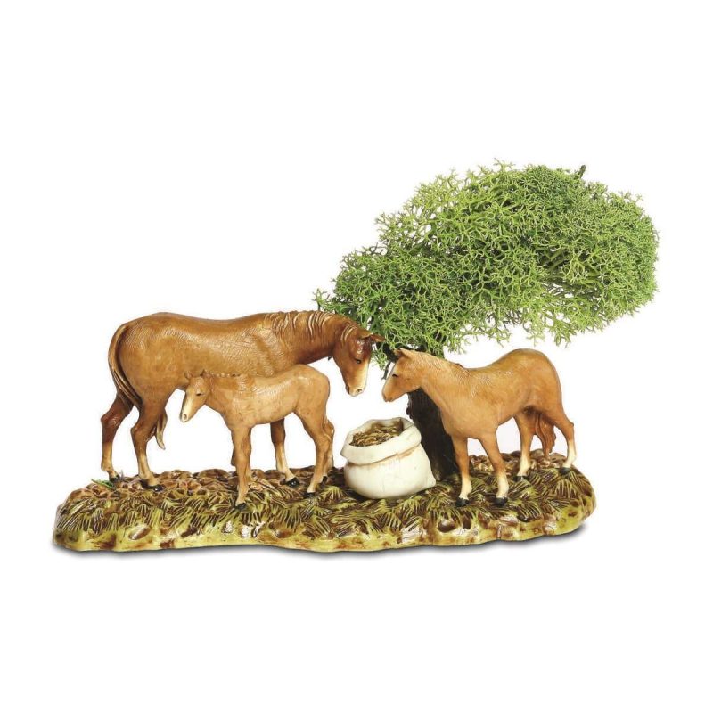 Compact 8 Moranduzzo Pferdegruppe für neapolitanische Krippe im Maßstab 1:22, handbemalte Tierfiguren.