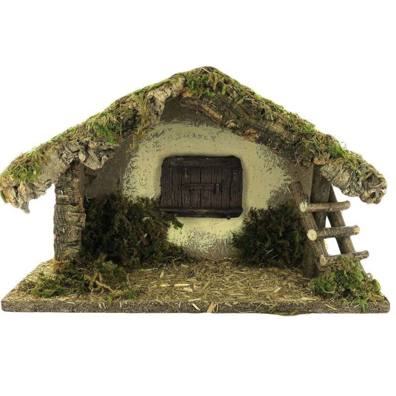 Leere Hütte mit Fenster und Leiter, das perfekte Element, um Ihrer Krippe Details hinzuzufügen.