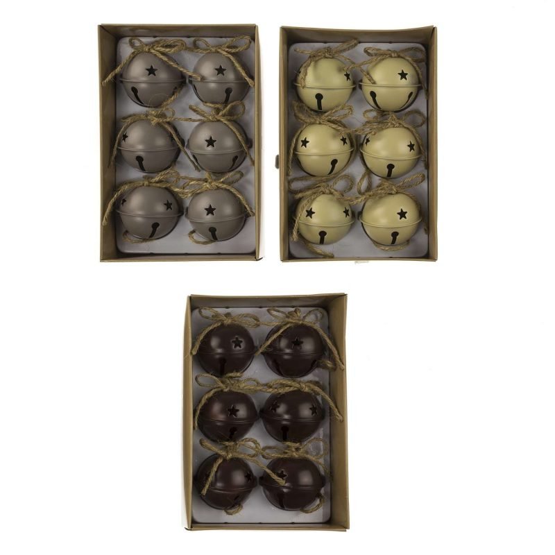 Set mit 6 Seifenblasen in elfenbeinfarbener, brauner und grauer Schachtel (Ø 4,7 cm); elegante Dekoration für Weihnachten.