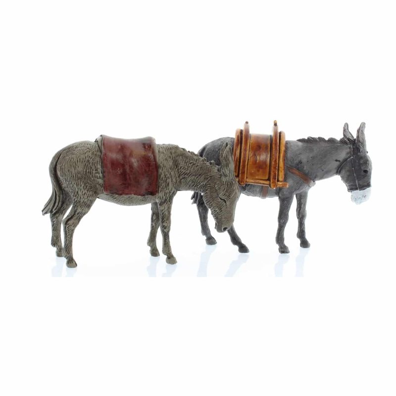 Set bestehend aus 2 verschiedenen handbemalten PVC-Eseln, ideal, um die ländliche Szene der Krippe im Maßstab 1:20 mit einem charakteristischen Detail zu vervollständigen. Sorgfältig gefertigt, verleihen sie Ihrem Setup Realismus und Lebendigkeit.