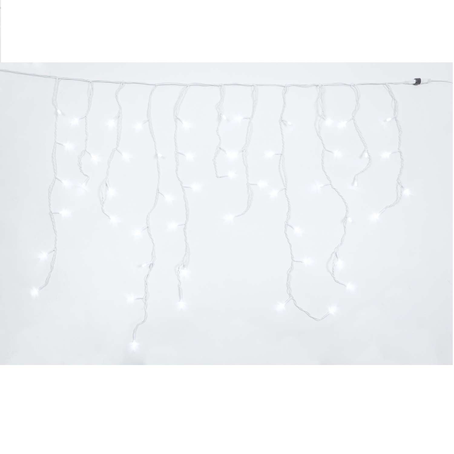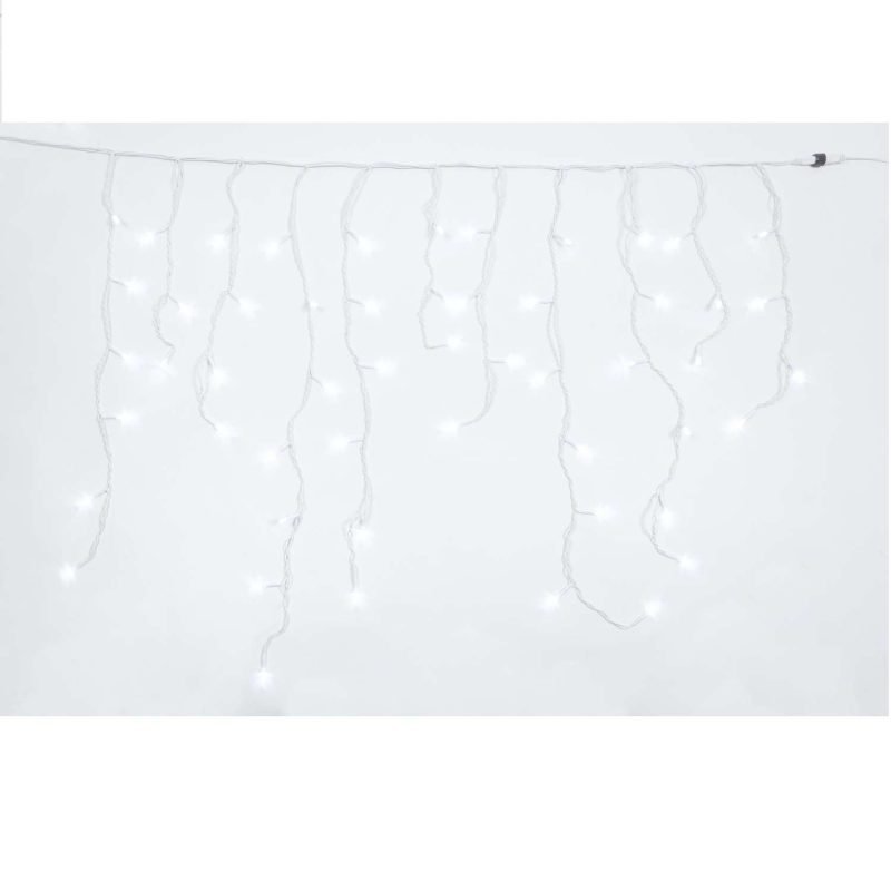 Stalaktiten Mega LED Eisweiß – 180 Mega LEDs Ø 8 mm – Lichtspiele – L 3,60 m × H max 80 cm – anschließbar (max 5 Sets) – weißes Kabel – 31V – Außeneinsatz