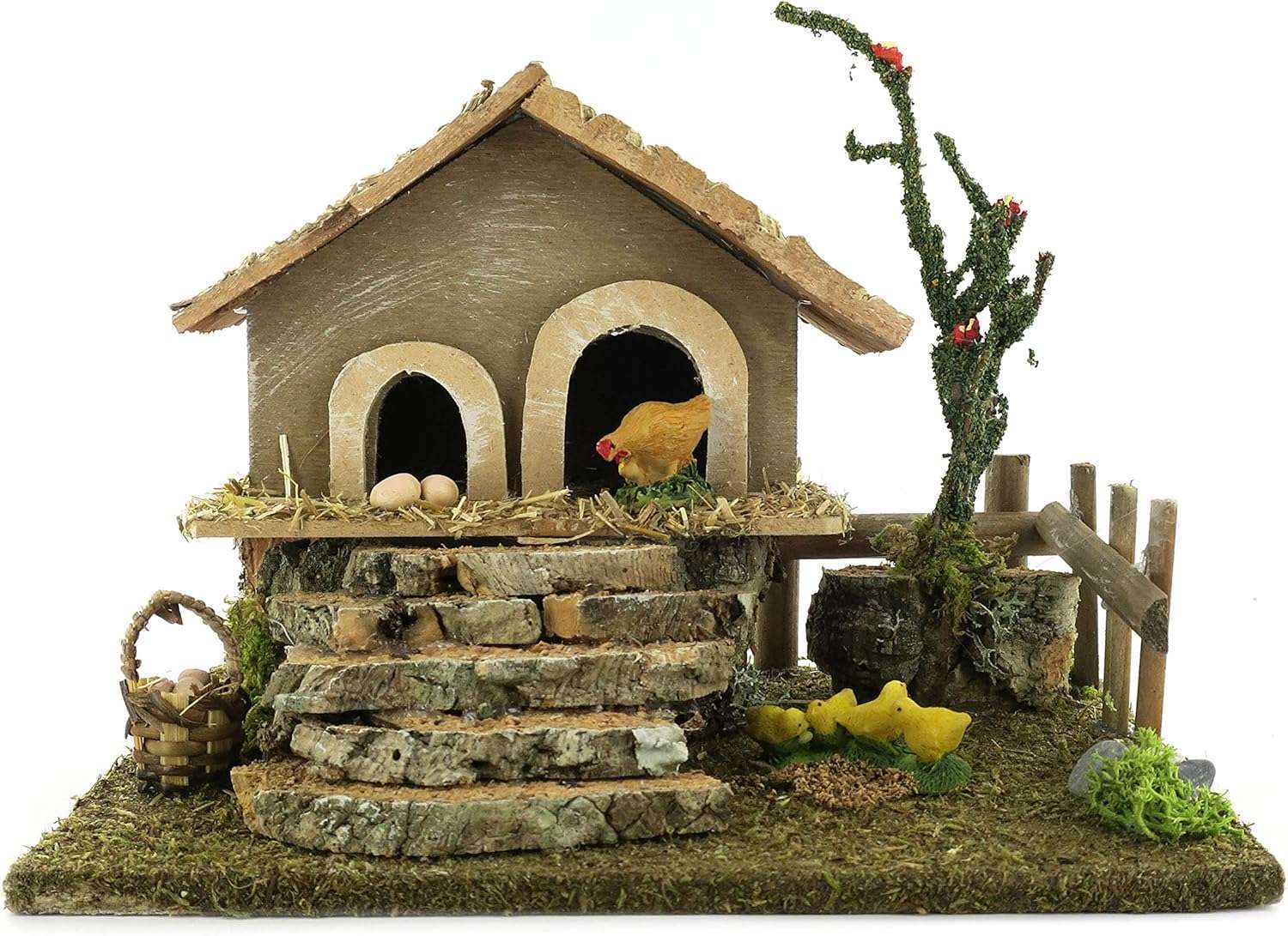 Chicken coop with farmyard for scenes of peasant life in the nativity scene: Create a scene of peasant life in your nativity scene with this chicken coop with farmyard. Perfect for adding rustic and realistic details, the chicken coop represents an authentic piece of everyday life, enriching your Christmas setting.