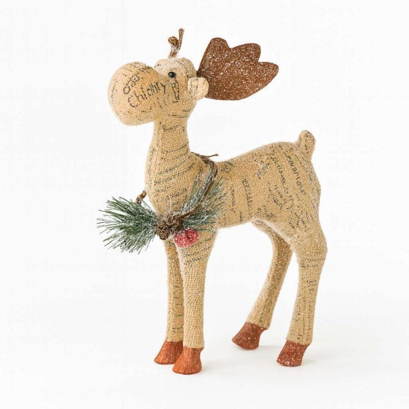 The Varaa elk h 20 cm brings scandi character to your compositions: soft plush, balanced proportions and thoughtful detail. Ideal on console tables and bookcases, it complements natural woods, warm metals and light chains. Perfect with playhouses and fir trees to recreate an elegant snowscape. Moranduzzo décor quality.