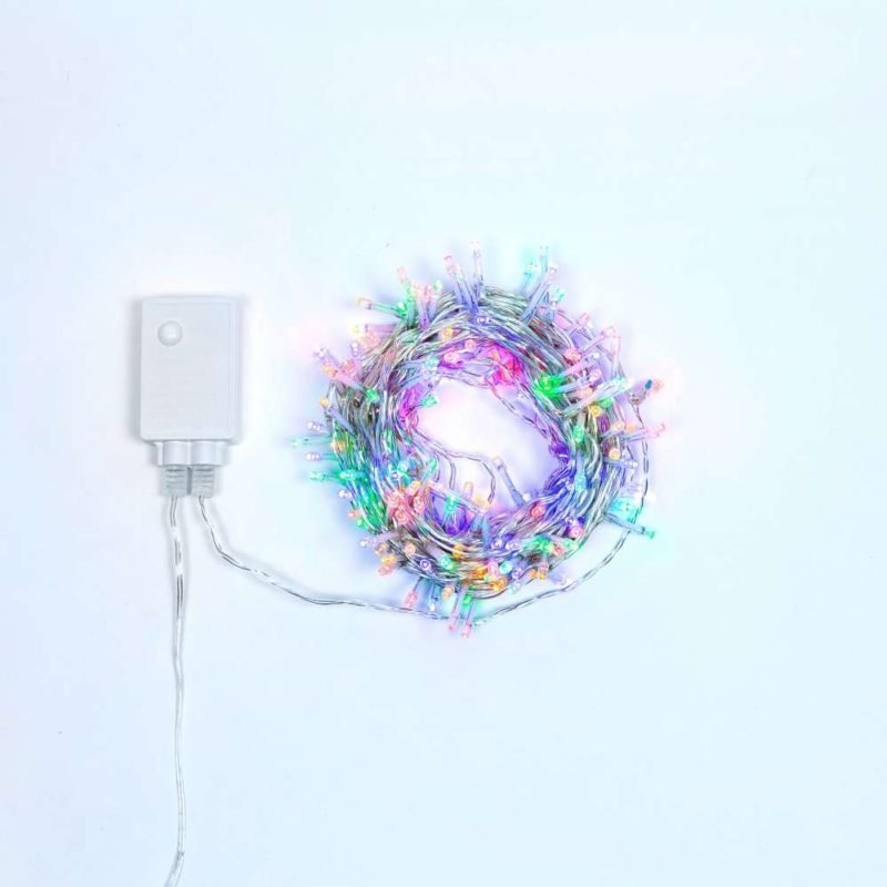 Light chain 180 multicolor LED 13 m with transparent wire, 31V and memory light games; perfect for outdoor use, creates a festive and dynamic atmosphere.