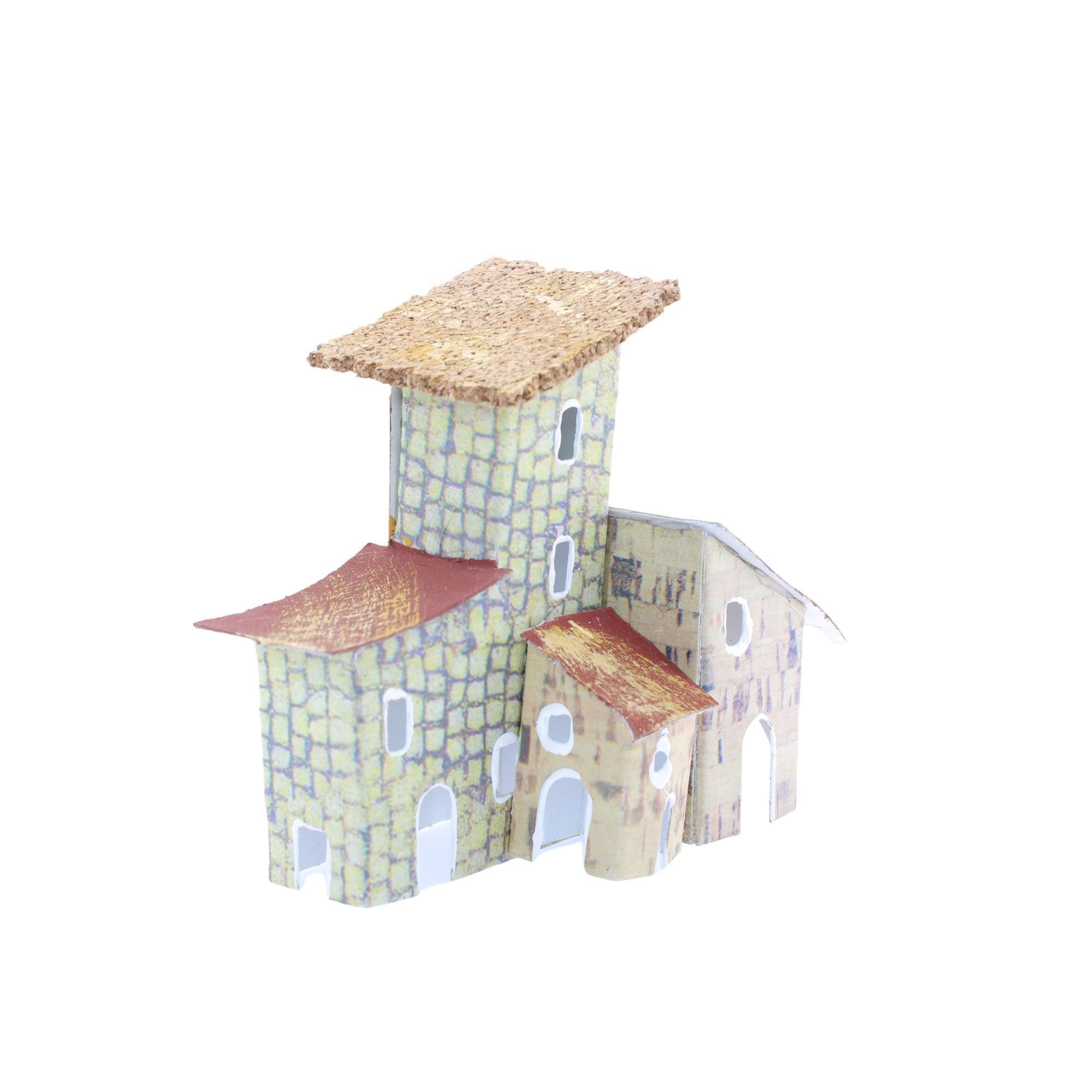 Group of houses for nativity scenes in Neapolitan style, measuring 10×4.5×10 cm. A compact and hand-finished element, ideal for enriching the background of the nativity scene with small architectural details. Landi product.
