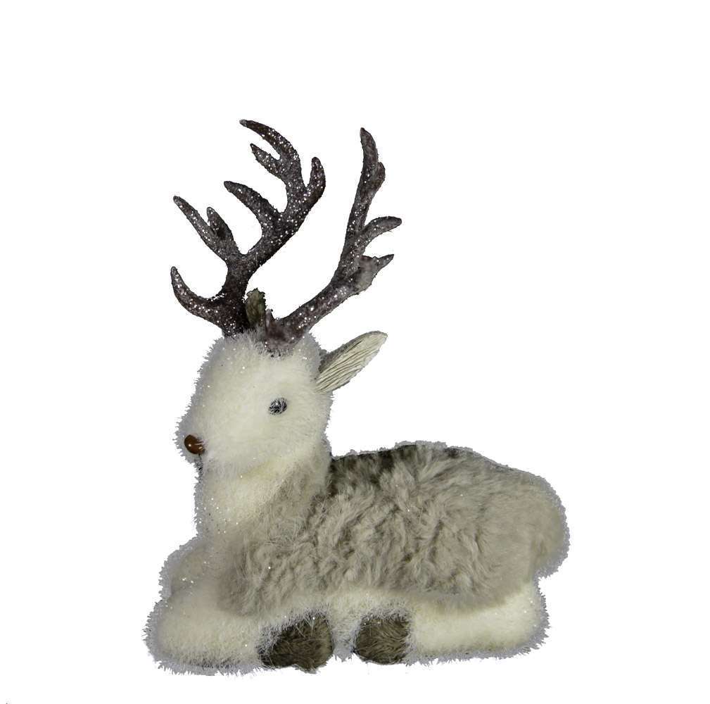 Lying Reindeer: soft plush décor, ideal on shelves, beds or under the tree.