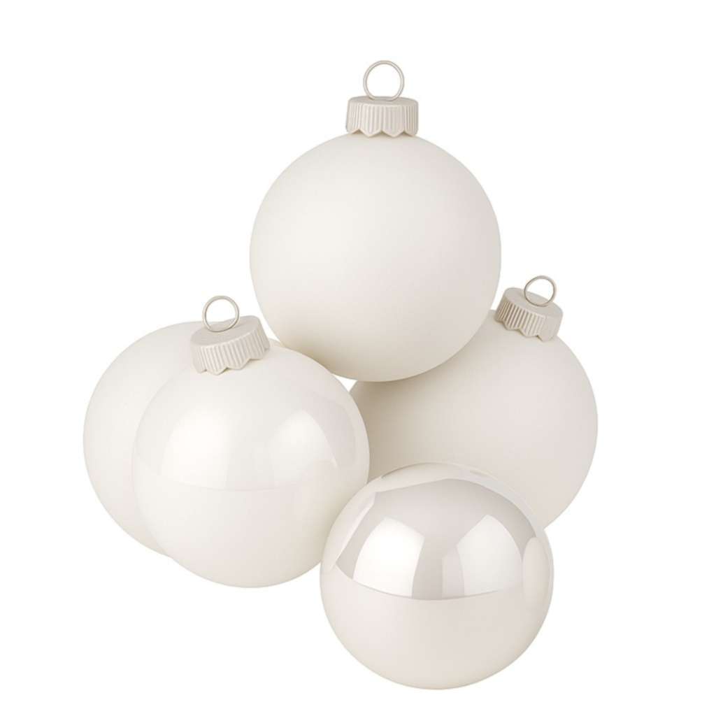 Set 4 Ø10 cm white glass balls, refined and understated Christmas décor.