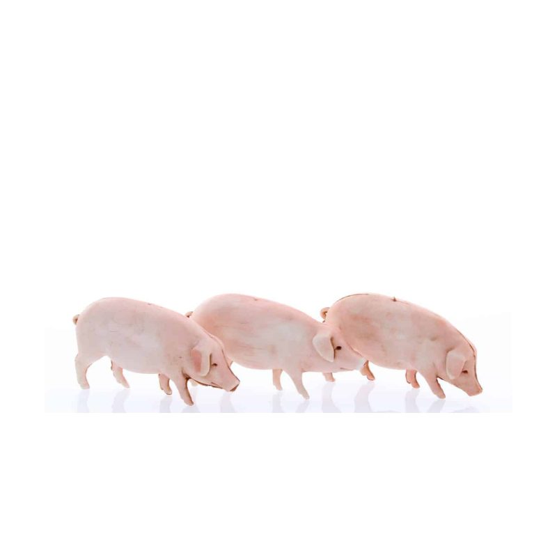 Set of 3 pigs made of PVC, finely hand-painted, perfect for adding realism and vitality to the rural settings of the nativity scene on a scale of 1:20. An unmissable detail for nativity scenes with attention to the smallest details.
