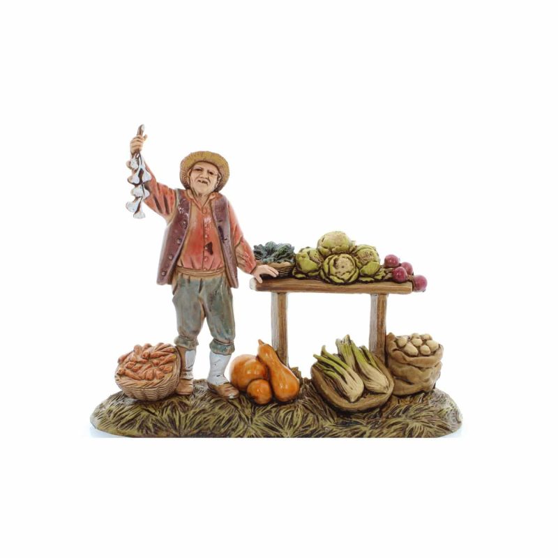 The Greengrocer Group, in typical Neapolitan style, shows a merchant at work with realistic details and bright colors, perfect for 1:20 scale nativity scenes. This figurine, screen-painted on PVC, brings the freshness and authenticity of the Neapolitan markets to your nativity scene, enriching the scene with tradition and craftsmanship.