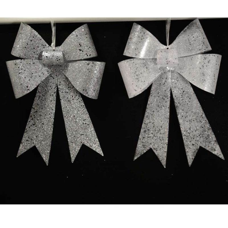 Bow with bows H60 cm iridescent silver white, elegant and refined Christmas décor for trees and large spaces.