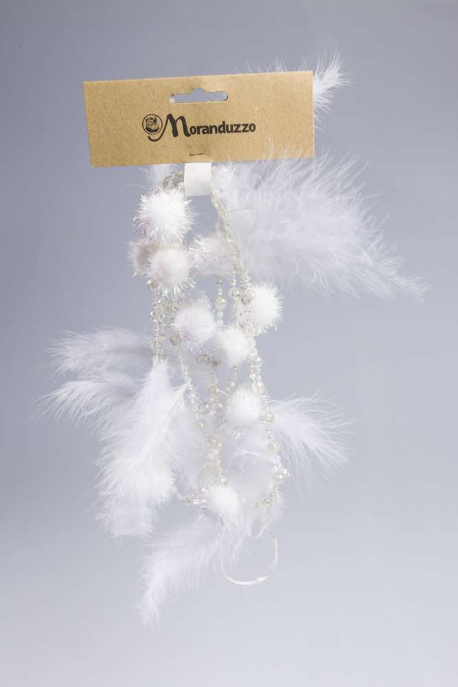 White 1.8 m chain with feathers and pom poms, original and exquisite Christmas décor.