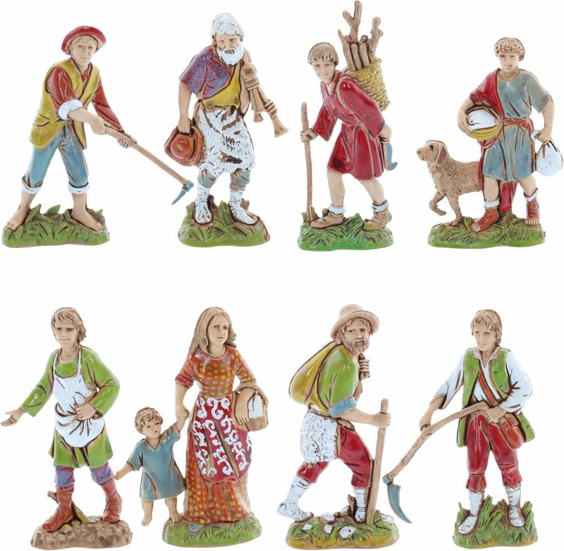 Set de 8 Standard 10 cm estilo landi napolitano para belén escala 1:20, PVC pintado a mano.
