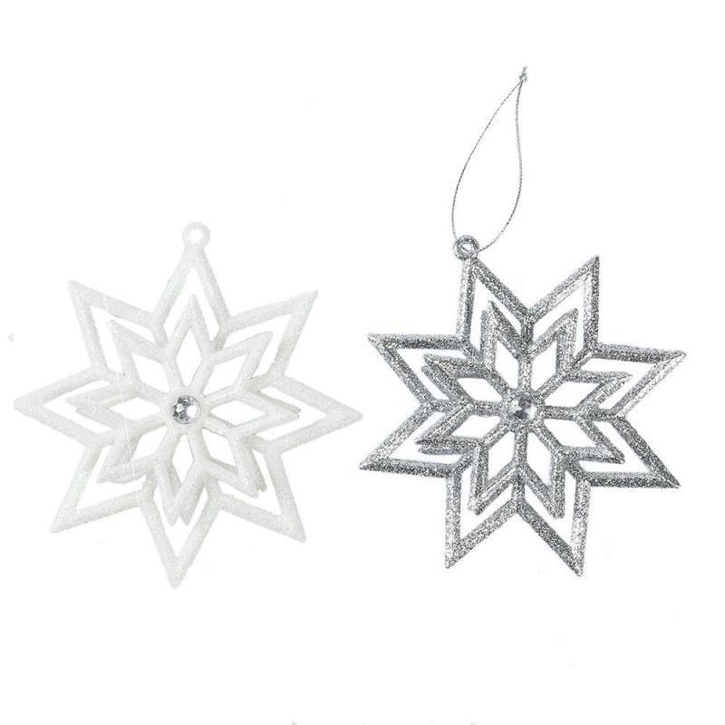 Estrella hueca de 12 cm de altura en 2 surtidos blanco y plateado; elegante y brillante decoración navideña para árboles, ventanas y decoración de interiores.