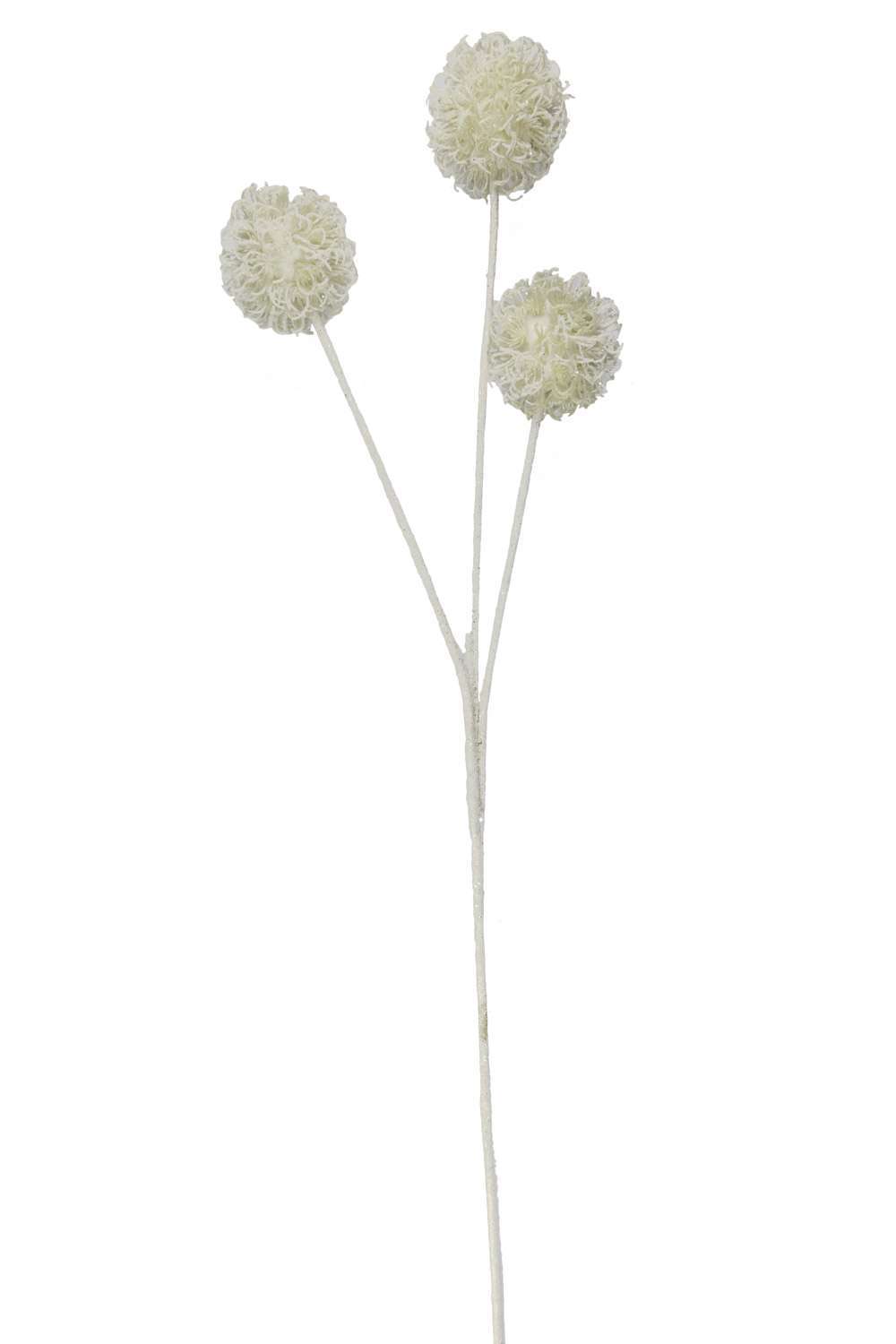 Flor «Ajo» h 82 cm con purpurina, ideal para composiciones verticales y jarrones escultóricos. Reflejos brillantes que realzan los decorados navideños y las instalaciones modernas. Fácil de modelar, excelente en mezclas con follaje verde y ramas metálicas. Decoración moranduzzo.