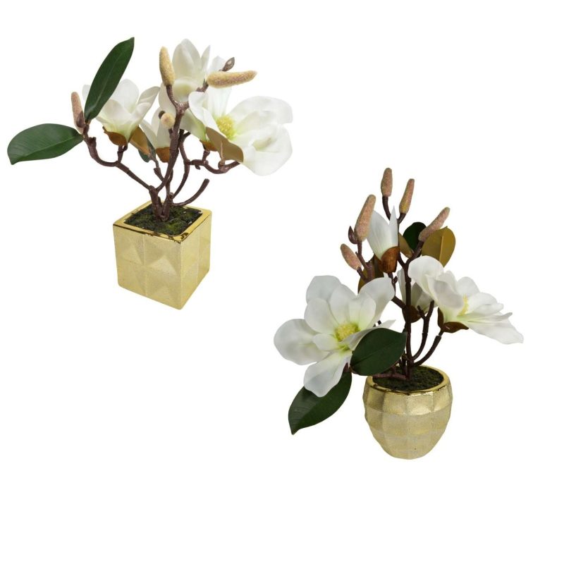 Juego de Magnolia Plumier en jarrón h 33/38 cm (2 surtidos): flores realistas listas para exponer.