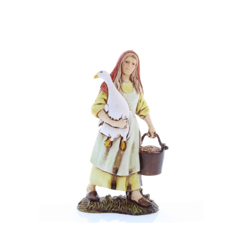 Mujer con oca Standard 10 para belén, PVC pintado a mano, altura 10 cm.