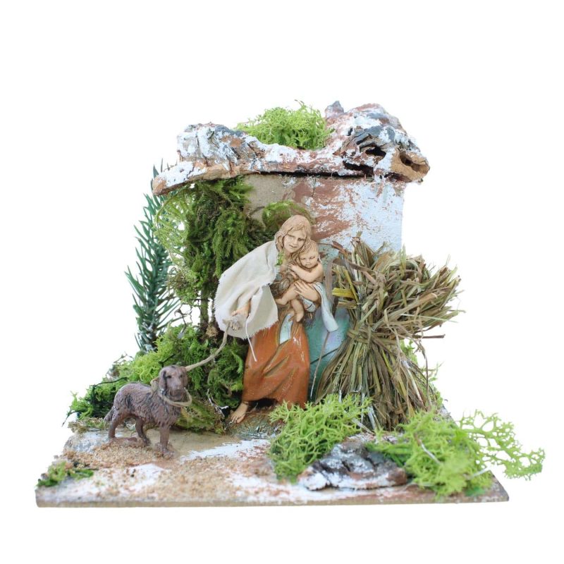 Mujer animada con niño y perro 220V, pintada a mano, ideal para belén escala 1:20.