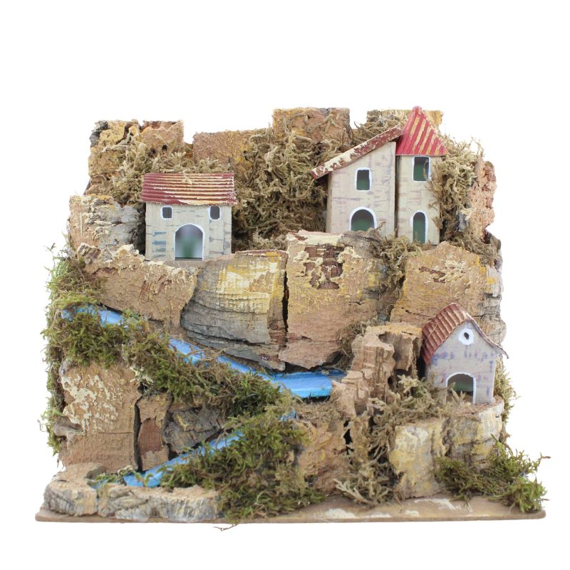 Paisaje belén 20x14x18 cm, tradicional y acabado a mano. Ideal como base para escenas sencillas.