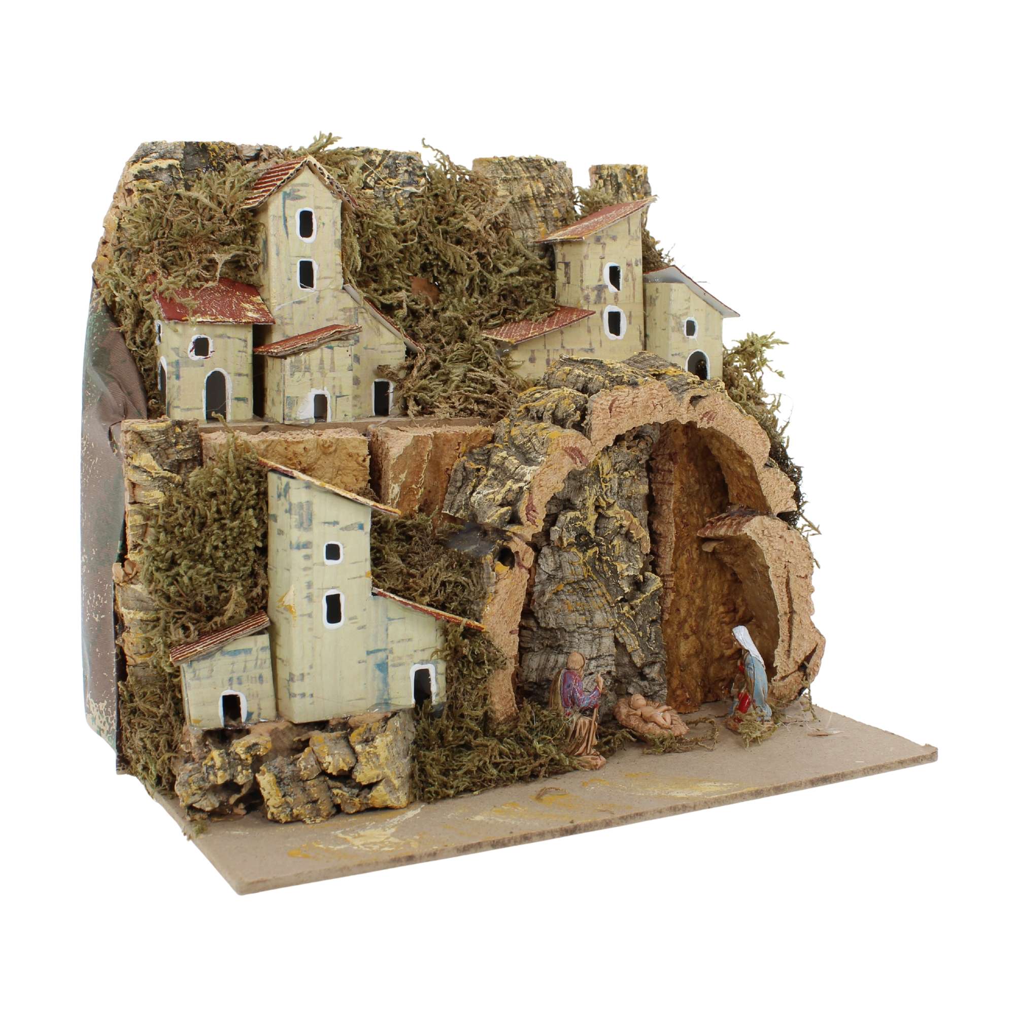 Paisaje para belén 20x14x18 cm con personajes de 3,5 cm incluidos. Composición compacta y lista para exponer, ideal para habitaciones pequeñas o para aquellos que buscan un conjunto preinstalado. Pintado a mano, firmado por Landi.