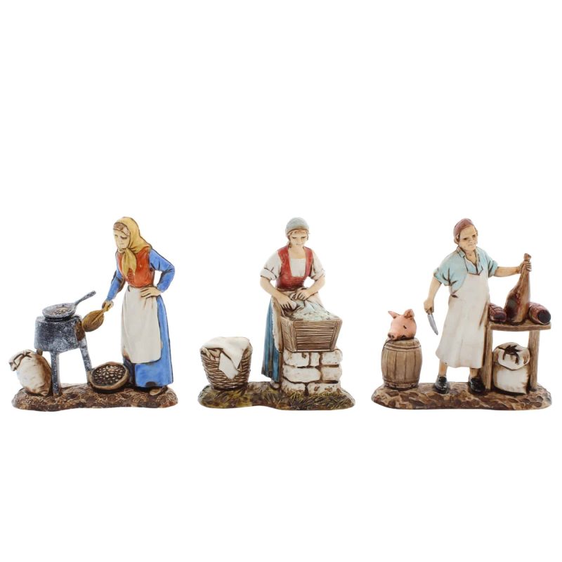 Set de 3 Compact 8 cm para belén de estilo napolitano escala 1:22, PVC pintado a mano.