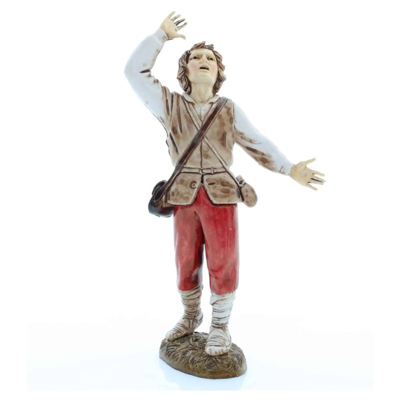 Statuette Wondered 12 en PVC pour crèche, échelle 1:15, sérigraphie peinte dans le style napolitain classique. Produit original Moranduzzo, fabriqué en Italie, signé Martino Landi et protégé par le droit d’auteur du ministère du Patrimoine culturel. Idéal pour enrichir les scènes de votre crèche d’une touche expressive et réaliste.