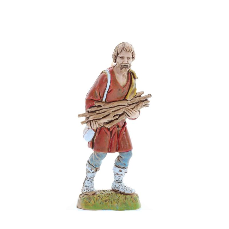 Berger avec fagot de bois Standard 10 Style Napolitain pour crèches à l’échelle 1:20