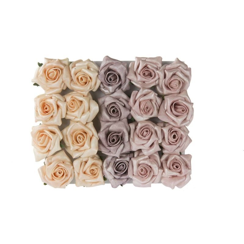 Boîte 20 roses Ø4 cm pêche lilas, décor raffiné et romantique pour enrichir les colis de Noël.