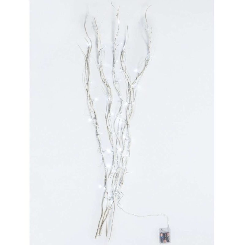 Branches lumineuses ivoire H120 cm avec 50 LED blanc glacé alimentées par piles, fil transparent ; décor élégant et scénique pour les intérieurs modernes de Noël.