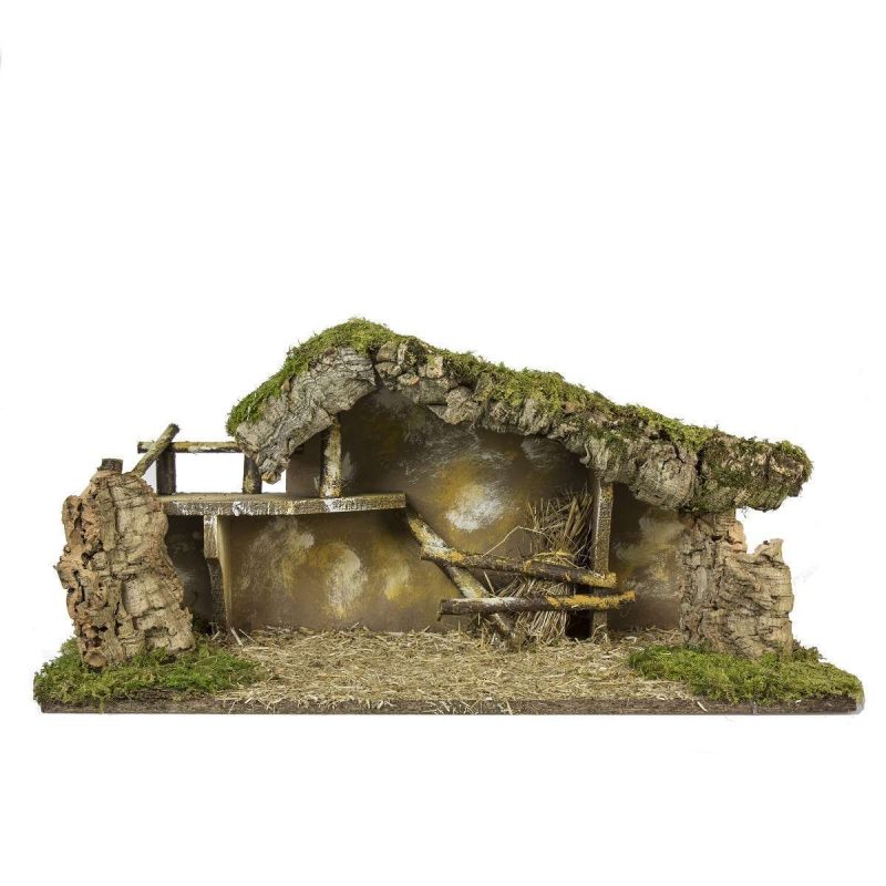 Cabane Moranduzzo en bois naturel, mesurant 58x24x26 cm, conçue pour des statues de 12 cm, échelle 1:15. Parfait pour créer des crèches élégantes et réalistes, avec une touche authentique et artisanale.