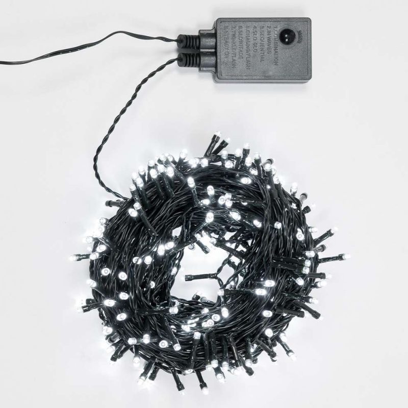 Chaîne lumineuse 300 LED blanc glacier 21 m avec jeux de mémoire, 31V pour l’extérieur. Lumineuse et résistante.