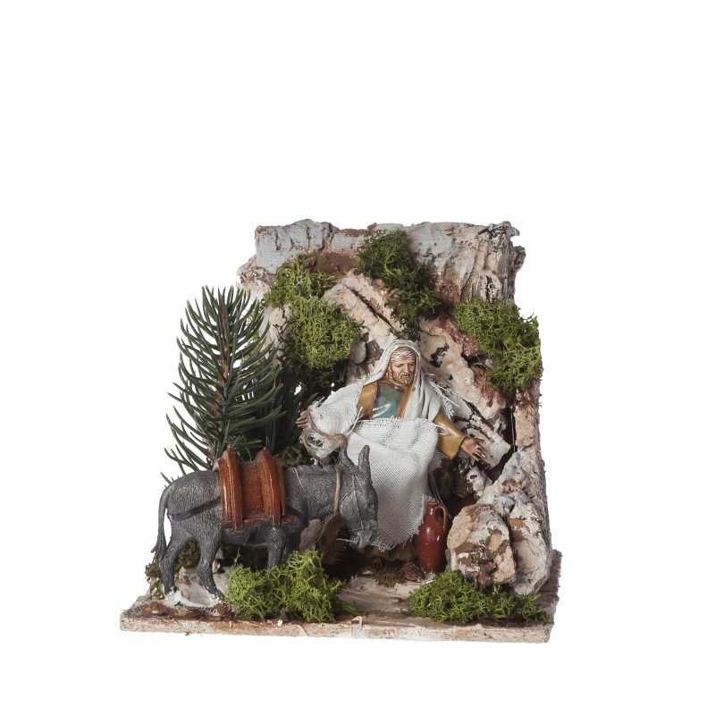 Homme tirant un âne animé 220V pour crèches à l’échelle 1:20