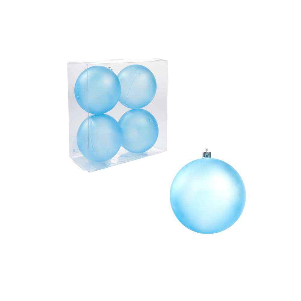 Lot de 4 boules aigue-marine givrées de Ø100 mm, décor élégant et original pour le sapin de Noël.