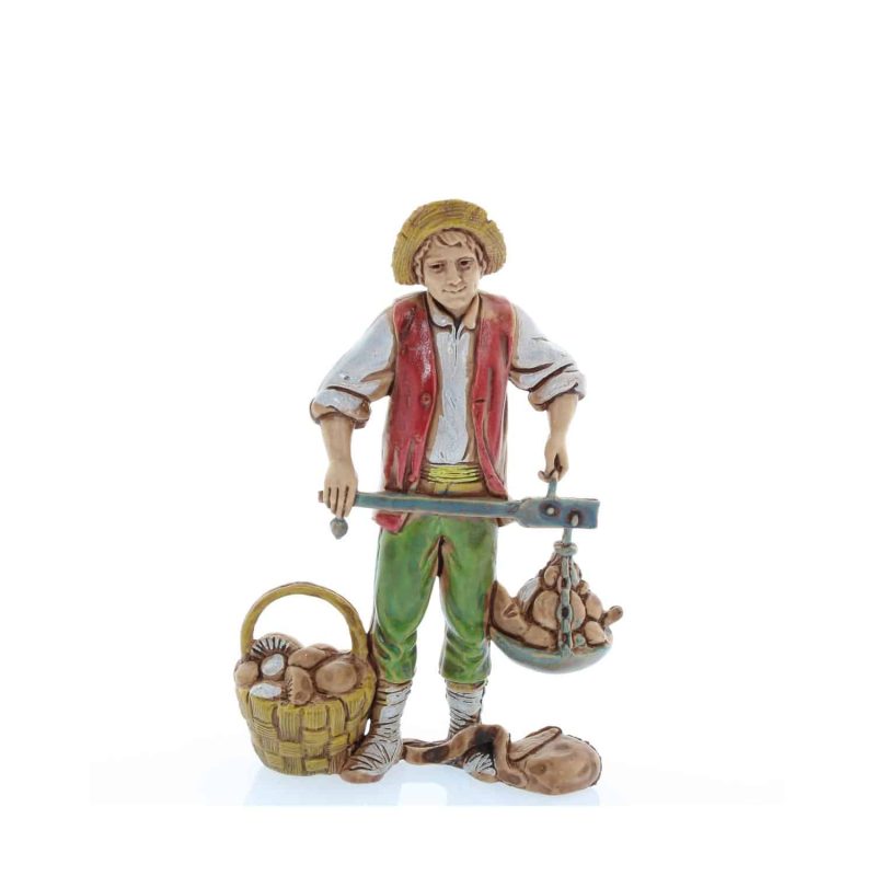 La figurine Standard 10 Greengrocer with Scale représente un vendeur de fruits de style napolitain, en PVC et sérigraphié. D’une hauteur de 8,6 cm, elle est parfaite pour créer des scènes de marché animées dans des crèches à l’échelle 1:20. La présence des écailles ajoute un détail réaliste et authentique à votre décor de Noël.
