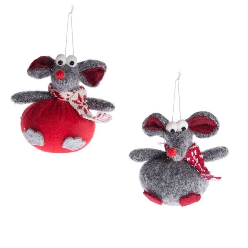 Souris Nedo H12 cm gris rouge ; belle et originale décoration de Noël pour le sapin.