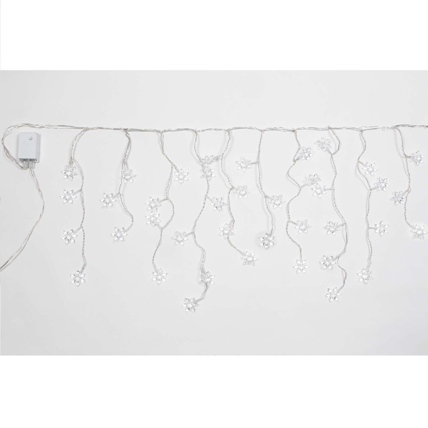 Stalactites Snowflakes LED – 180 LED blanc glacier – jeux de lumière – L 4,20 m × H max 50 cm – 24V – fil transparent – usage extérieur