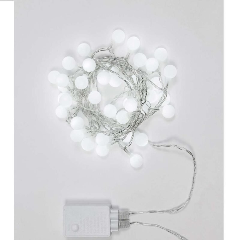 40 Sfere Opache Ø 2 cm – 40 LED Bianco Ghiaccio – giochi luce – L 4 m – 31V – filo trasparente – uso esterno