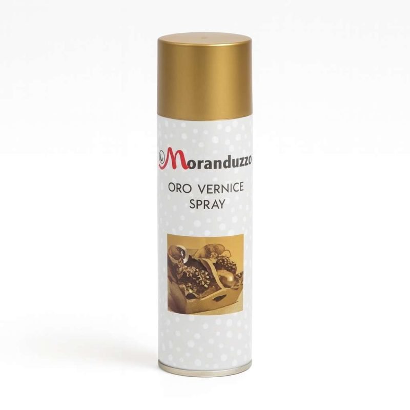 Spray oro 150 ml: valorizza composizioni e confezioni con un velo dorato. Perfetto su pigne, legni e carte; abbinabile a rossi e verdi per un effetto tradizionale. Moranduzzo.