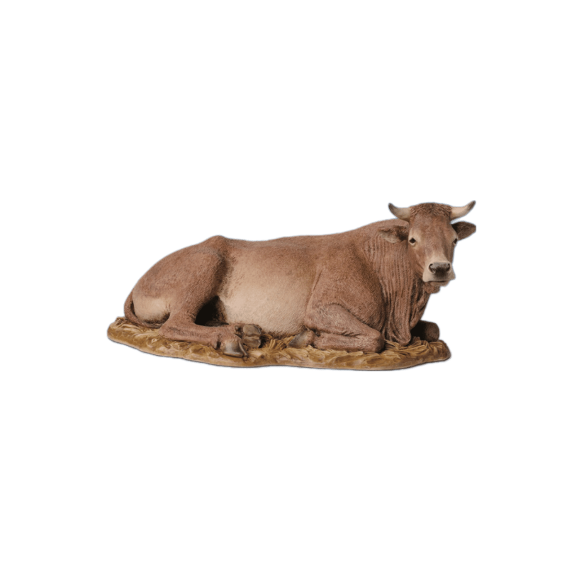 Statuina Bue Prestige 30 Moranduzzo, prodotta in marmoresina e dipinta a mano. Essenziale per una scena della Natività raffinata e autentica in scala 1:5, ricca di dettagli realistici e preziosi.