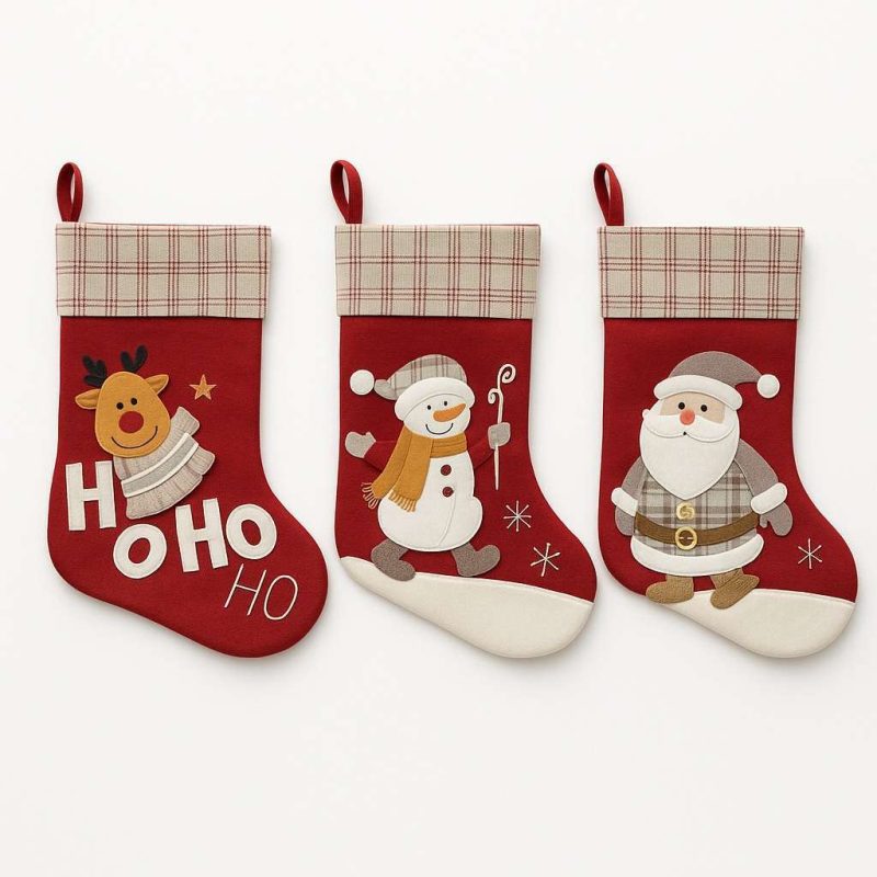 Calza New Wave 40×25 cm Santa Snowman Deer, décor festoso e moderno.