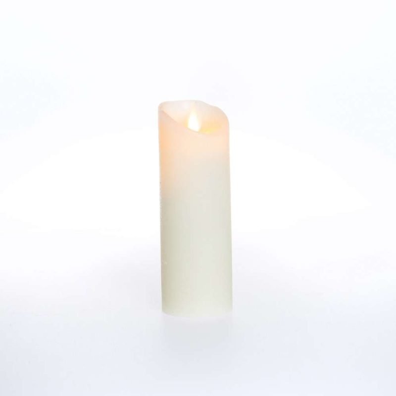 Candela in Cera Avorio Rustico LED effetto vera fiamma – H 15 cm × Ø 5,2 cm – 1 LED luce calda – a batteria – con timer – uso interno