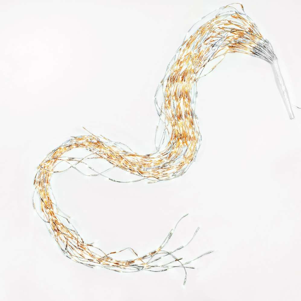 Cascata LED filo bianco H220 cm con 720 LED caldi, 144 flashing, 31V.